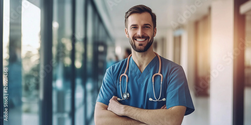 Porträt einer lächelnden Krankenschwester in der Büroumgebung einer modernen Gesundheitseinrichtung - Krankhaus - Gesundheit Heilung