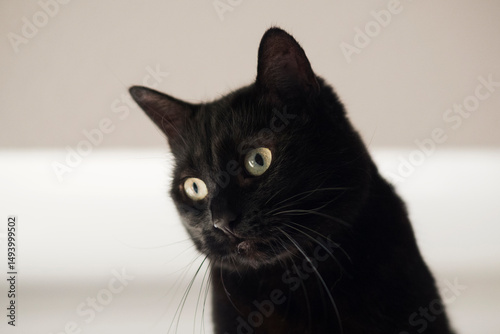 Porträt einer schwarzen Hauskatze in ihrem Zuhause