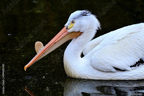 Porträt eines Nashornpelikans (Pelecanus erythrorhynchos), American White Pelican.