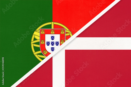 Portugal and Denmark, symbol of national flags from textile. Championship between two European countries.
