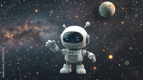 Positive cute robot pointing at a space. Copy space, ai generated. Cute blue robot giving thumbs up 3D rendering illustration.