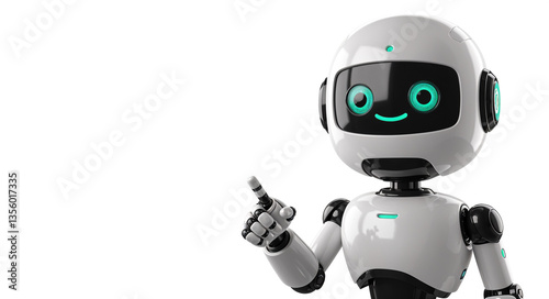 Positive cute robot pointing at a space. Generative AI