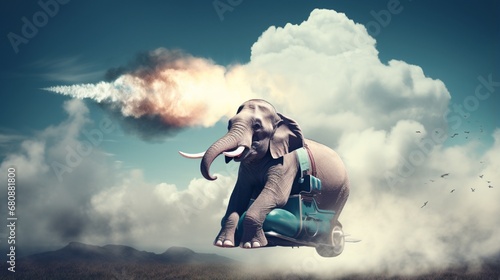 Possibility, Courage, Determination, Elephant, Flying, Rocket, Business Sign, Achievement, Faith, Upward Growth, Success, Ambition, Entrepreneurship, Symbolic Representation, Innovation, Creative Busi