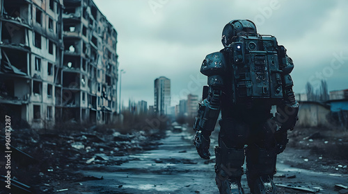 Post Apocalyptic Cityscape Futuristic Robot Soldier