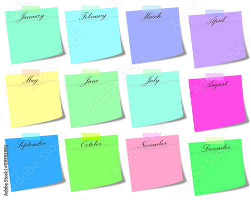 post it note with months on white background - calendar icon