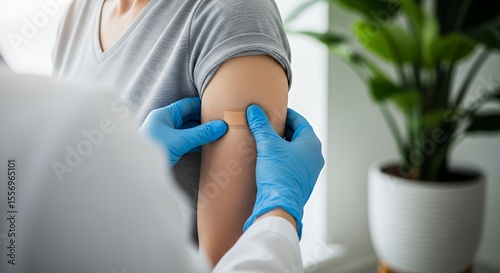 Post Vaccination Care: Doctor Applying Bandage After Injection