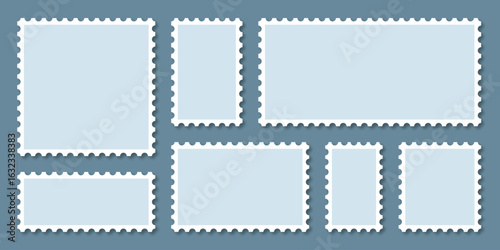 Postage stamp borders set vector. Blue postage stamps set. Realistic post stamps set. Blank postage Stamps in flat design. vector illustration