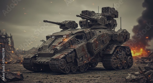 Post-Apocalyptic War Machine: A Battle-Scarred Tank in a Desolate Landscape
