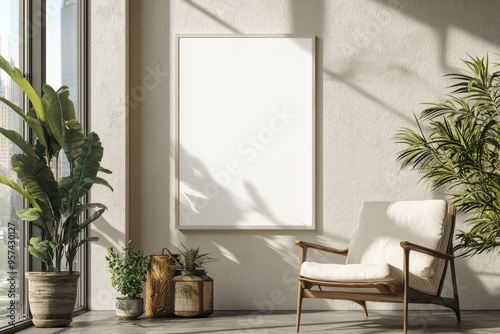 Poster Frame in Beige minimalist living room interior created with generative AI