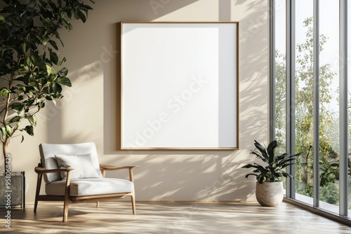 Poster Frame in Beige minimalist living room interior created with generative AI