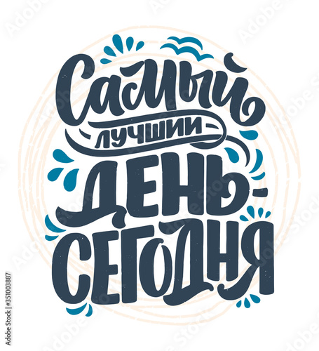 Poster on russian language - The best day is today. Cyrillic lettering. Motivation quote. Funny slogan for t shirt print and card design. Vector
