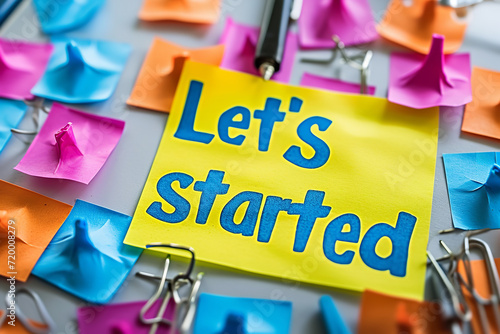post-it note with the words "let's get started"