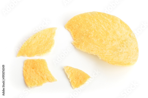 Potato chips crumbs and leftovers isolated over the white background