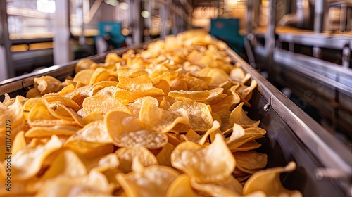 Potato chips production line at the factory. potato chips and snacks