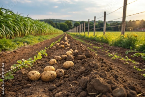 Potatoes Growing in a Sunlit Field During Harvest Season Generative AI