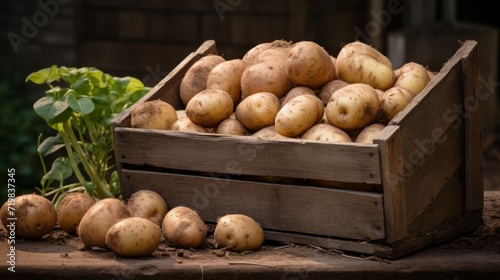 potatoes in a wooden box. Neural network AI generated art