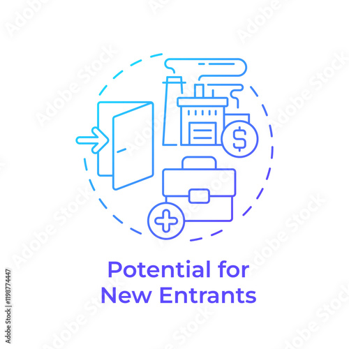 Potential for new entrants blue gradient concept icon. Difficult with entering industry. Porter 5 forces. Round shape line illustration. Abstract idea. Graphic design. Easy to use in article