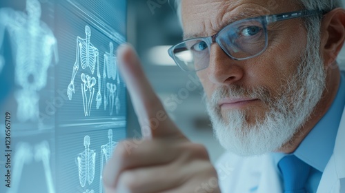 Potential Health Effects. Medical professional analyzing X-ray images with a focused expression.