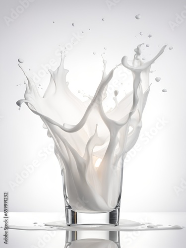Pour fresh milk into a glass with a small splash. Isolated on a white background