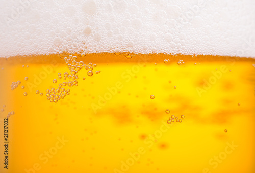 Pouring beer with bubble froth in glass for background. Summer drink texture