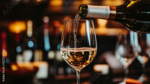Pouring Exquisite White Wine into a Elegant Wineglass