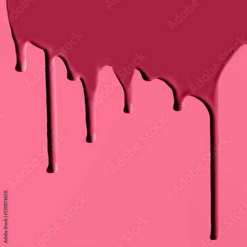 Pouring paint. Creative pattern with copy space. Trending color of 2023 - Viva Magenta.