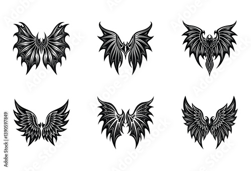 Power of Duality – Angel and Demon Wings Vector Clipart for artists exploring gothic, spiritual, or supernatural themes in their designs.