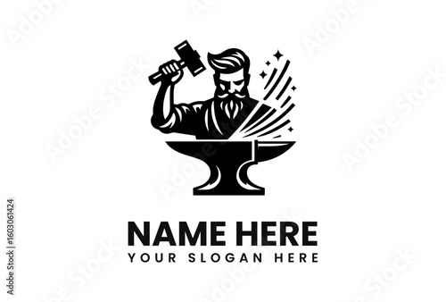 Powerful Blacksmith at Work with Anvil and Hammer.