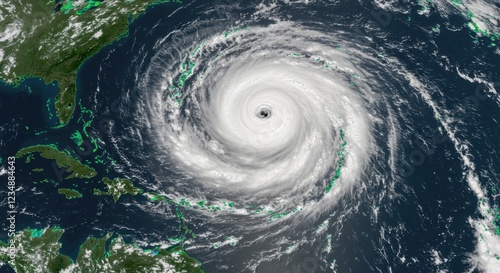 Powerful hurricane swirling over the Atlantic Ocean near the coast