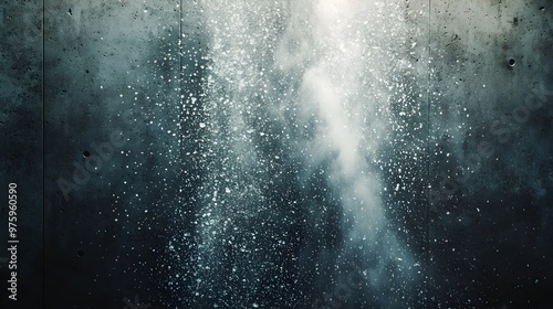 Powerful jet of water blasting away layers of grime from a concrete wall, exposing the smooth surface underneath, high contrast, industrial, realistic textures, cinematic shot