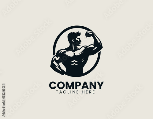 Powerful Male Figure Impressive Pose Dynamic Strength Vector Logo Design