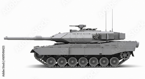 Powerful modern main battle tank military vehicle side view with detailed tracks and turret ready for action