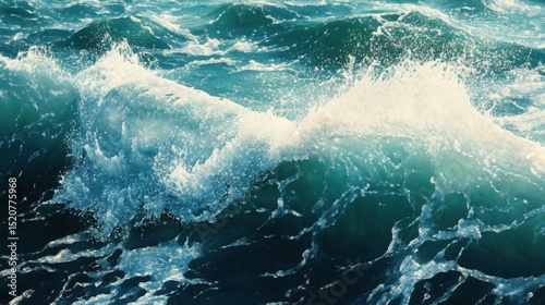 Powerful ocean wave crashing in deep blue water.