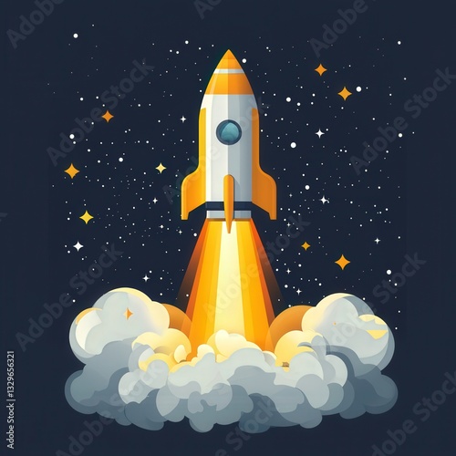 Powerful rocket launching into the sky with flames and smoke billowing from the engine below