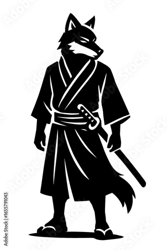 Powerful samurai wolf warrior with katana ready for battle in traditional Japanese clothing vector illustration
