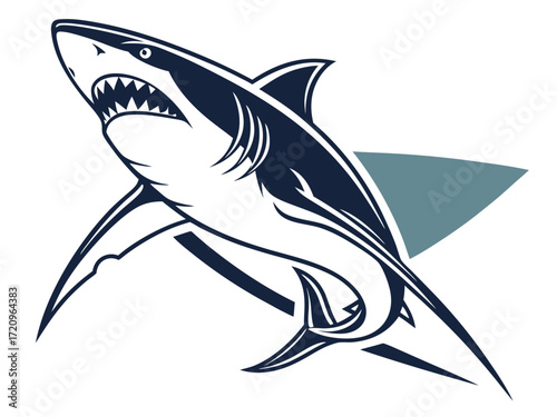 Powerful Shark Logo Design in Striking Blue and White