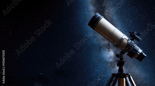 Powerful telescope aimed at a night sky filled with stars and the milky way