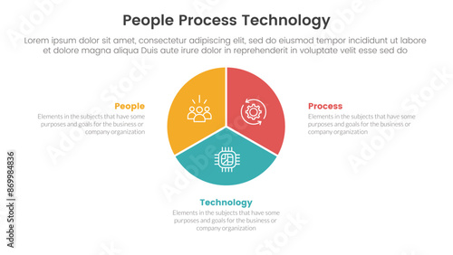 PPT framework people process technology infographic 3 point with circle pie chart diagram for slide presentation
