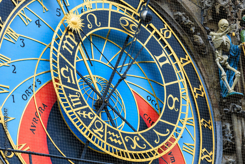 Prague astronomical clock close-up. The main attraction of the capital of the Czech Republic. Background