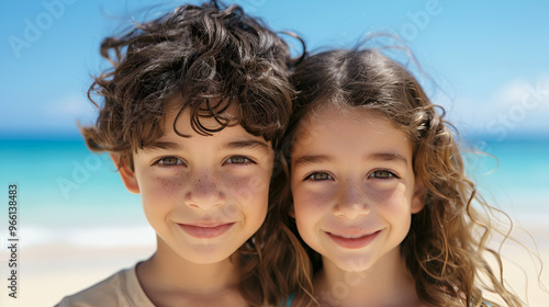 Pre Teen And Child Siblings Hug And Snuggle Smiles