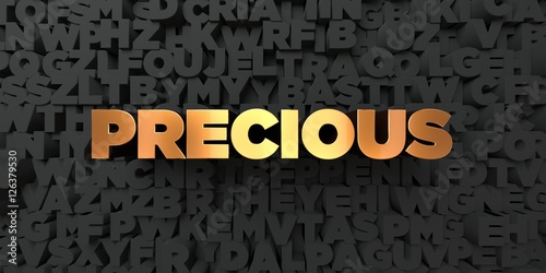 Precious - Gold text on black background - 3D rendered royalty free stock picture. This image can be used for an online website banner ad or a print postcard.