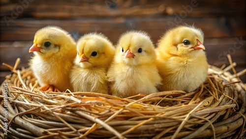 Precious newborn chicks snuggle in their cozy nest, a heartwarming photoshoot capturing their cuteness.