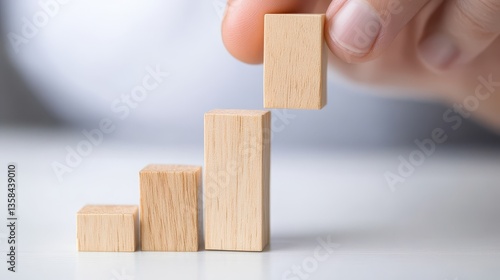 Precise placement, person positions wood block on table in a workshop setting