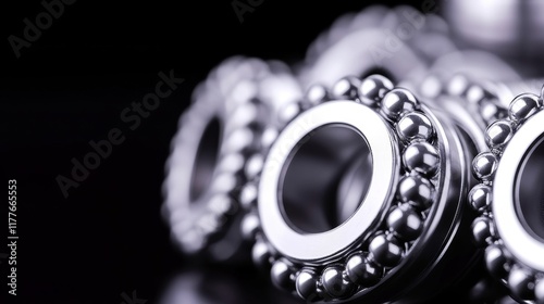 Precision Ball Bearings Closeup - Industrial components, metallic spheres, engineering precision, rotation, high-tech manufacturing.