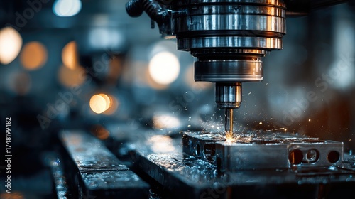 Precision Machining Process with Spark Creation from Metal Cutting Tool in Industrial Workshop Environment