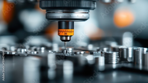 Precision manufacturing with a close-up of a machine tool working on intricate components in a factory setting.