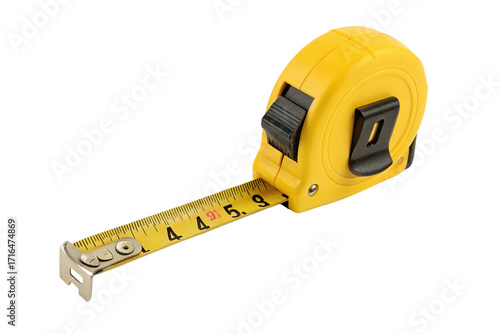 Precision measuring tape for builders, contractors and DIY projects with yellow casing