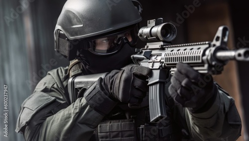 Precision Redefined: Digital AI Sharpshooter in Action - Taking Aim on His Target with an AR-15 Rifle