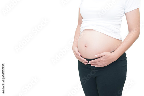 pregnancy with her hand on white background