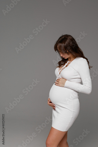 pregnant girl in studio on paper background